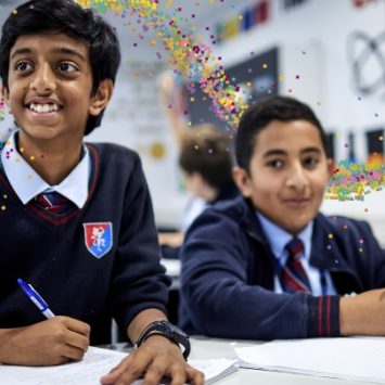 Interconnected figures and technologies, representing school partnerships